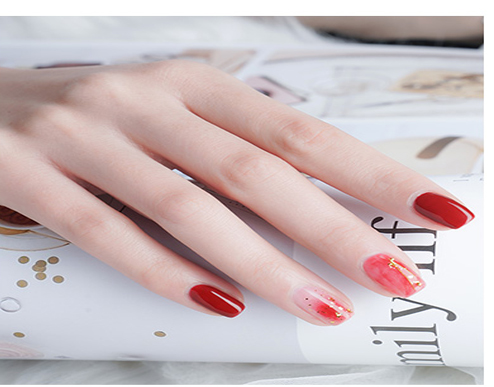 1、紅色純色美甲+紅色暈染甲