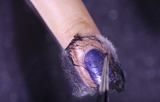 涂抹加鈣護甲水固定住酒精棉絲網。