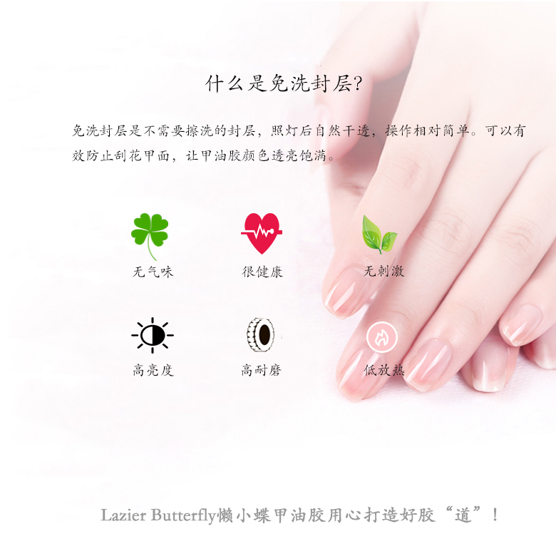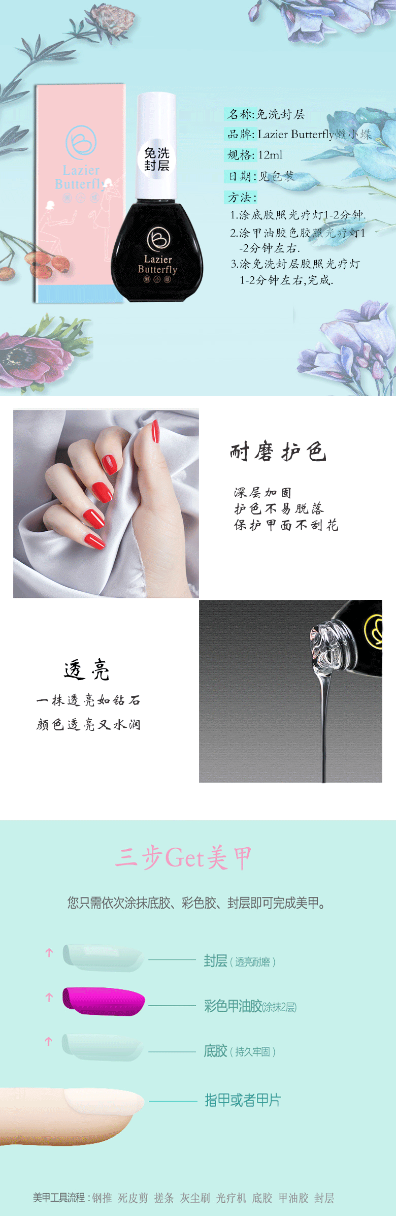 懶小蝶Lazier Butterfly無味美甲超亮持久健康耐磨耐刮封層膠